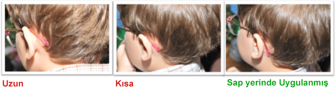 - Çerçeve saplarının kulak arkası yerleşimi şakaklardaki basısı